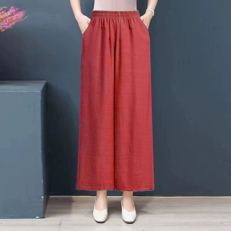 Popular style for middle-aged and elderly people, high-waisted, loose and thin wide-leg pants