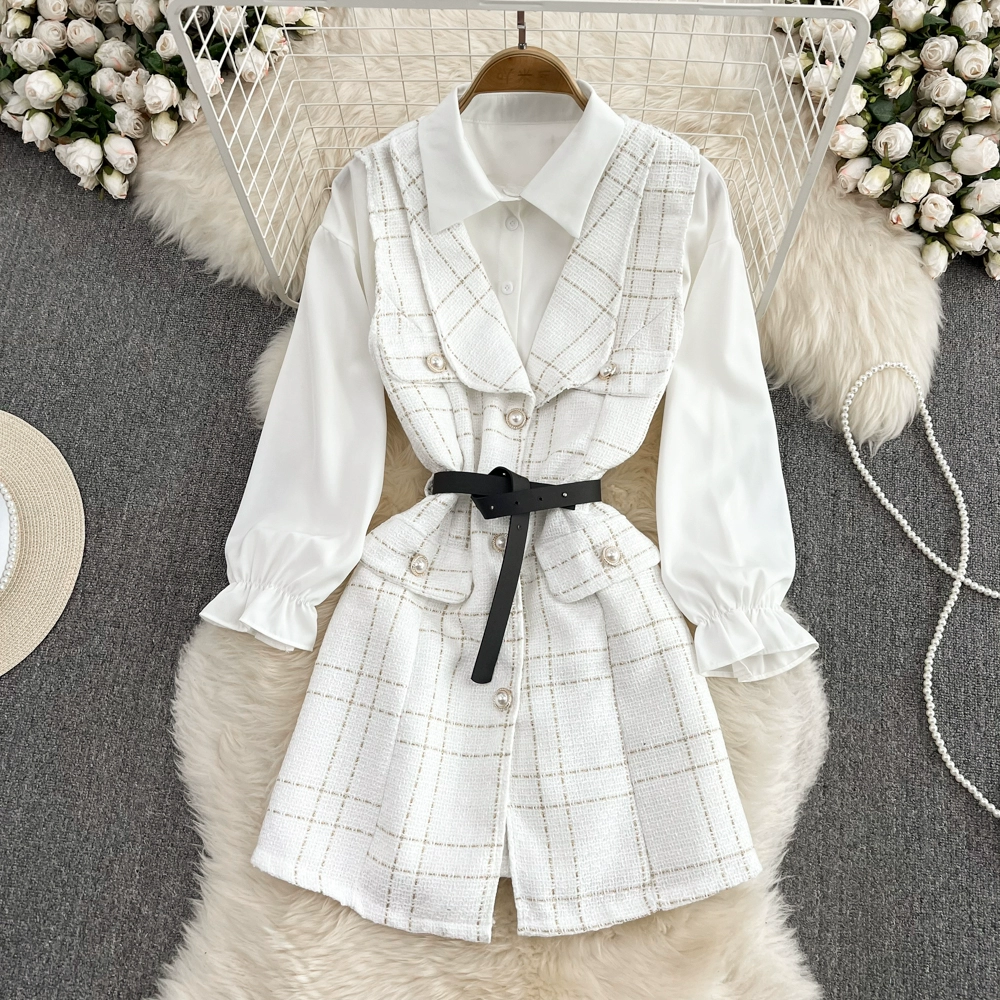 Goddess style lady single breasted tweed loose vest