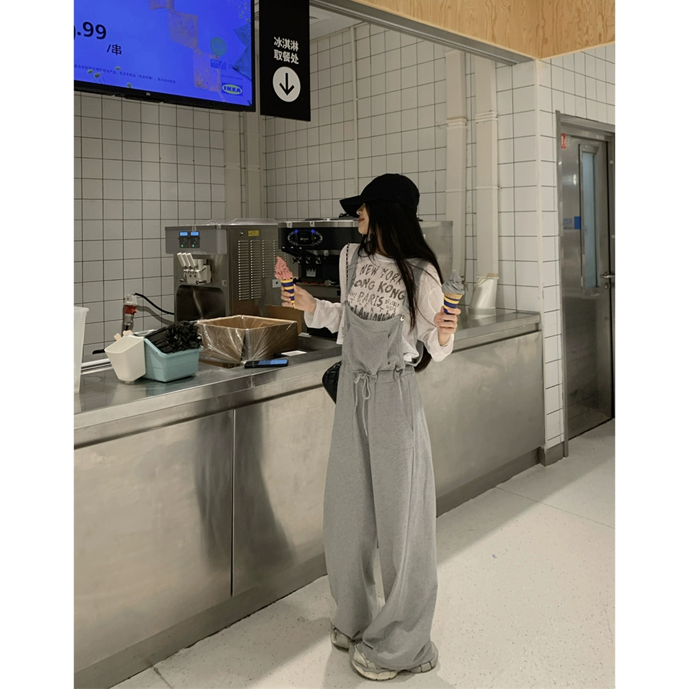 Age-reducing hooded suspenders for women’s summer niche trousers with drawstrings