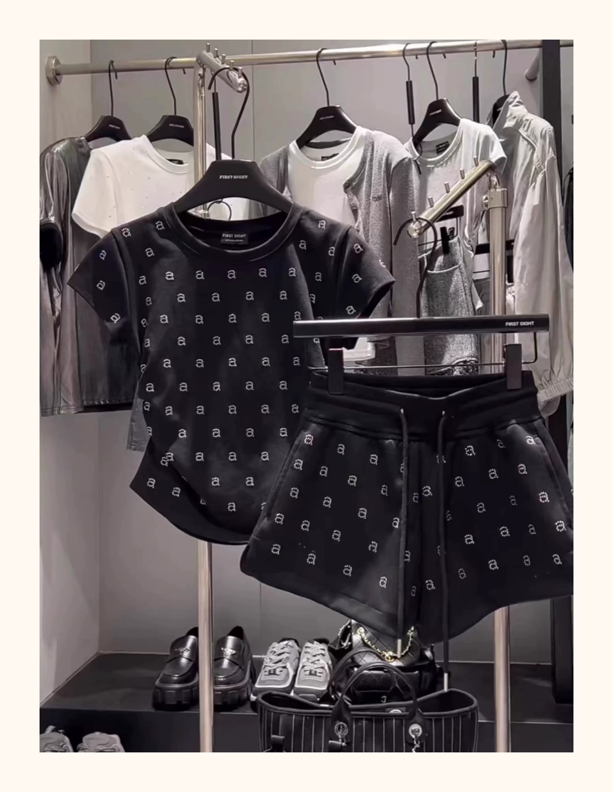 European station hot diamond Paris Eiffel Tower ins white t-shirt