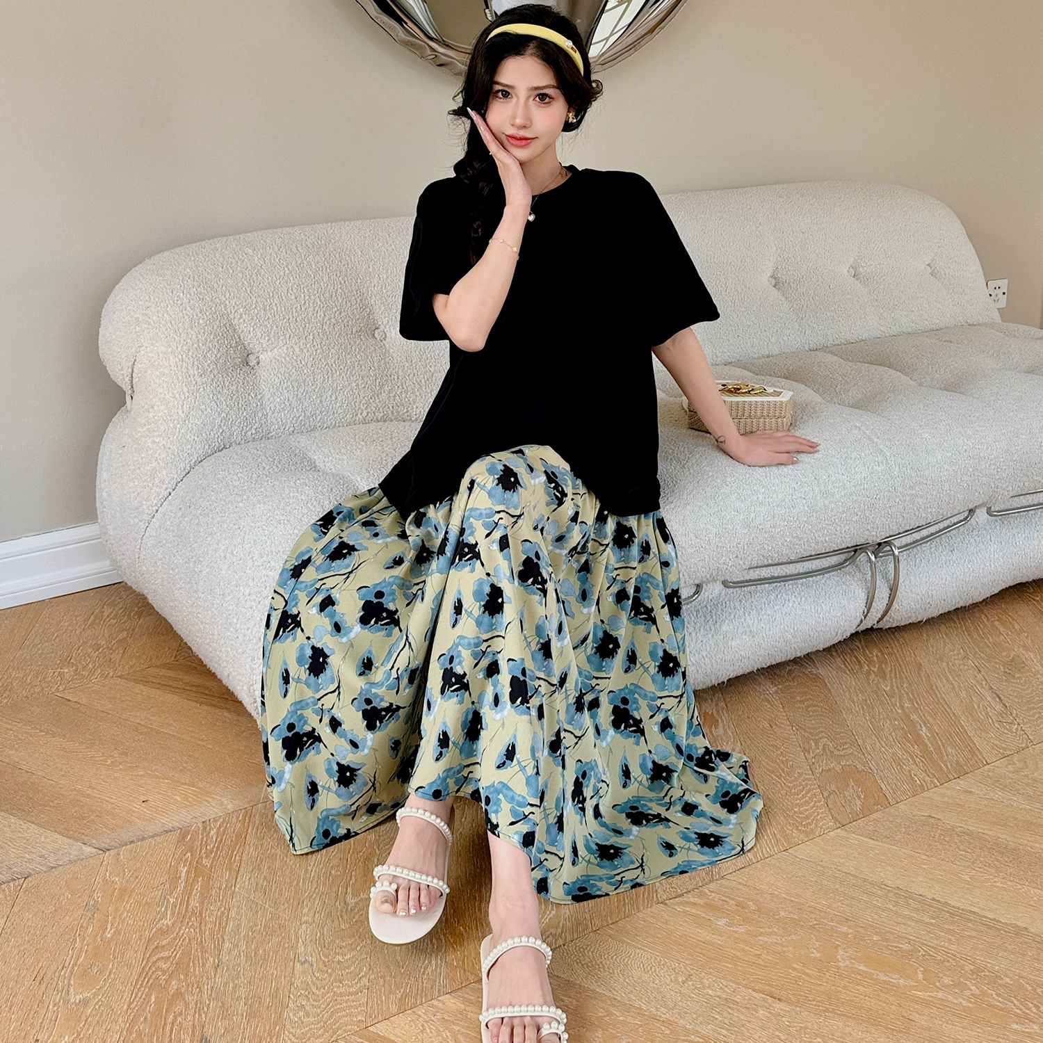 French retro heavy industry three-dimensional A-line skirt with flowers
