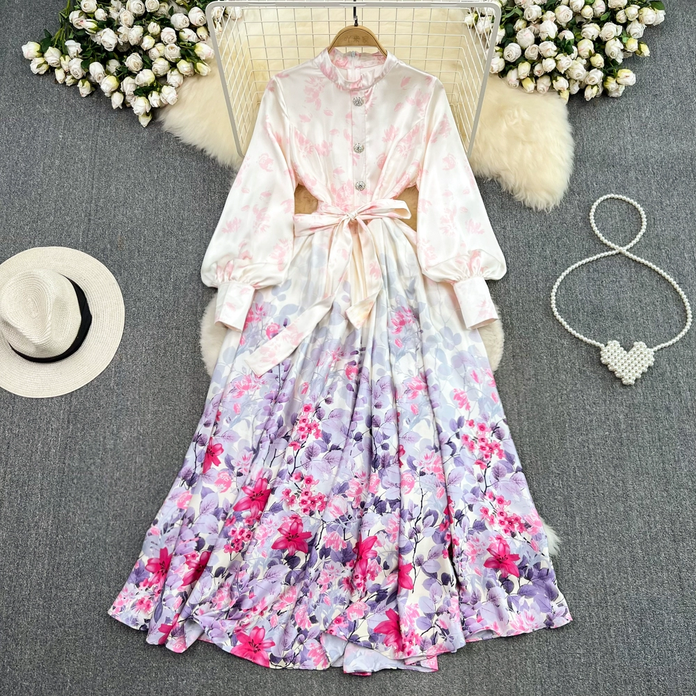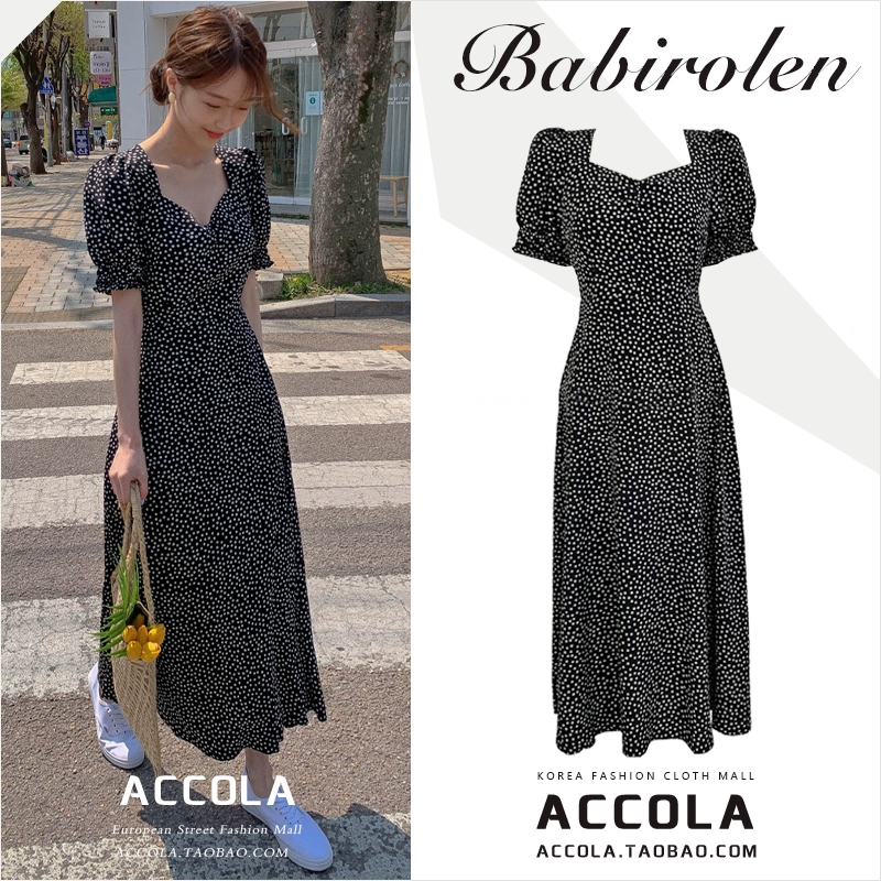 Puff-sleeved floral floral waist slimming dress with forest style retro French platycodon girl’s first love dress sweet summer