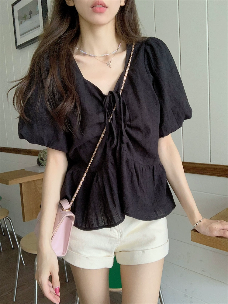 Age-reducing French style beautiful and fashionable fat girl short-sleeved shirt