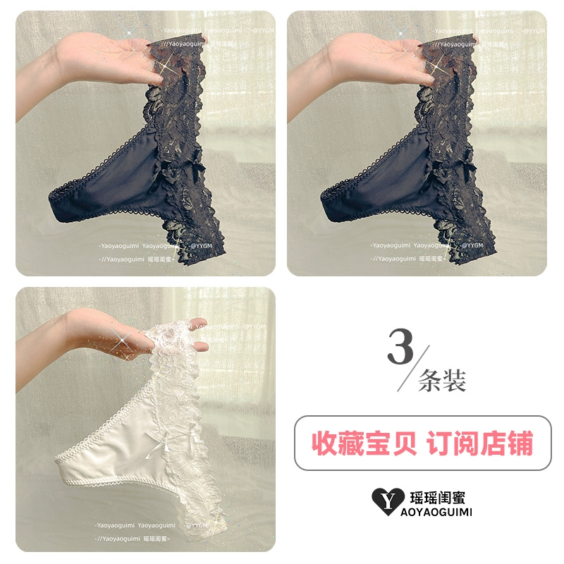 Yaoyao bestie’s lace sexy thong women’s underwear low-waisted hollow ice silk hot temptation pure lust pink T-pants