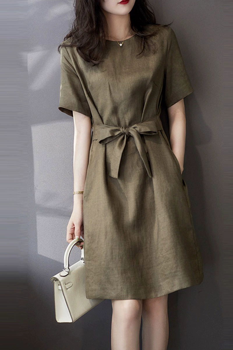 Light luxury women’s summer elegant linen and tencel cotton dress