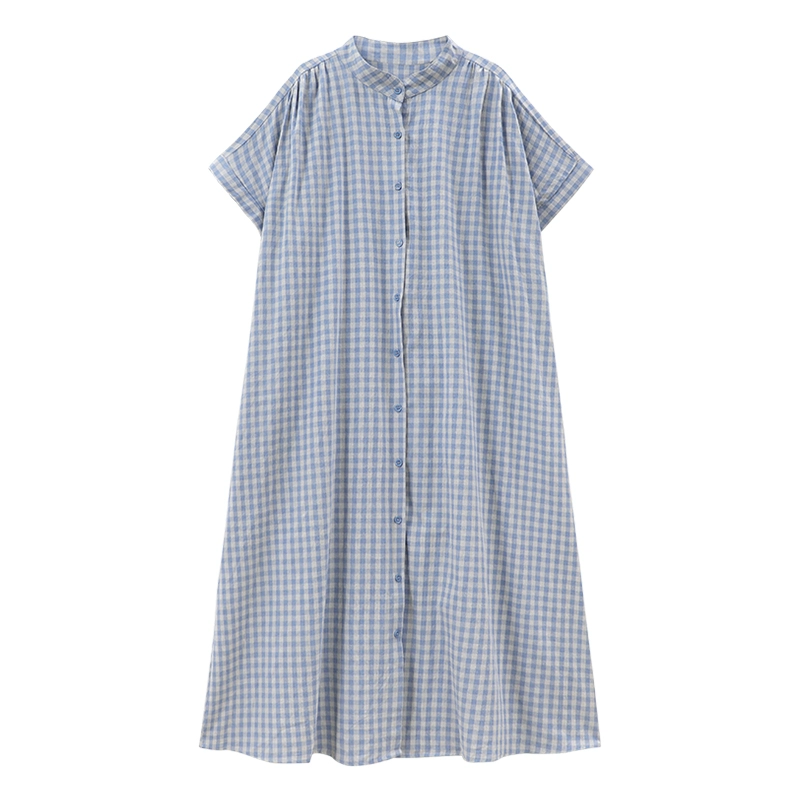 Plaid long design holiday style casual short sleeves