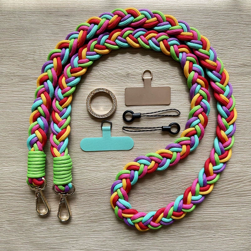 High-end six-strand braided mobile phone cross-body lanyard, high-end women’s cross-body side-back backpack strap, extended halter neck, shoulder sling, wide fixed clip hanging piece, multi-functional, strong and durable chain, thick and soft