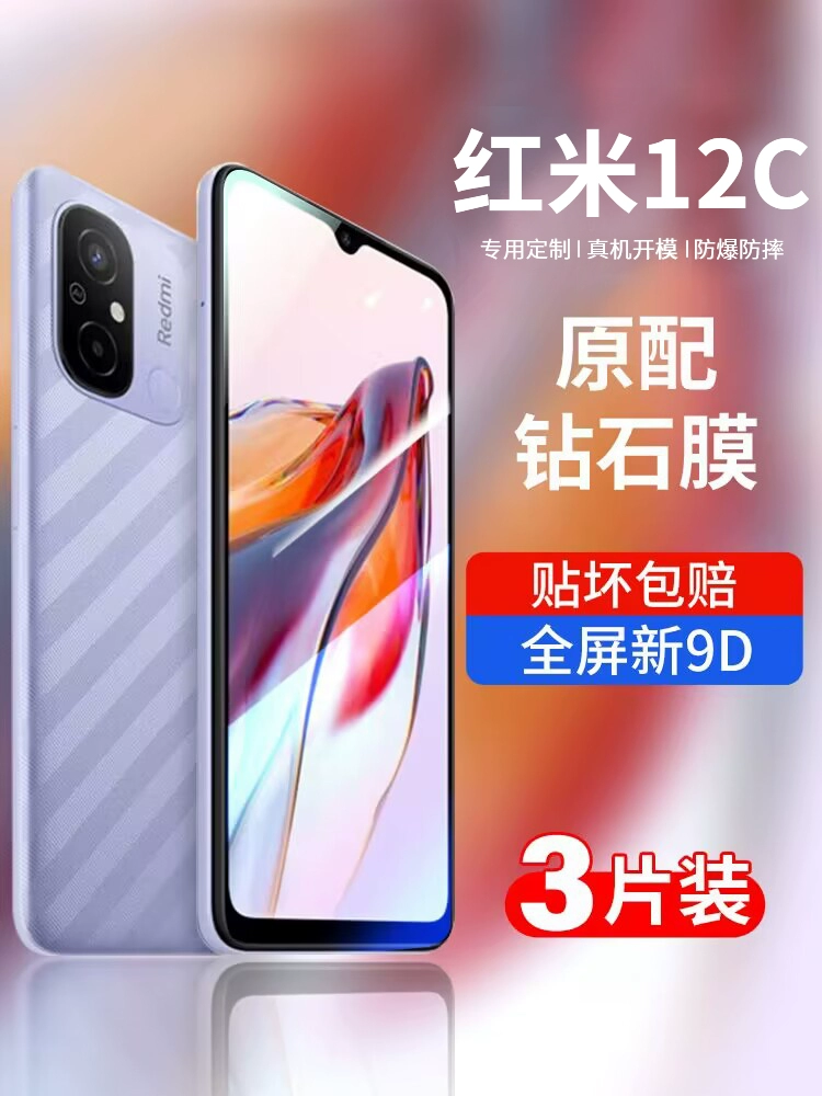 Suitable for Redmi 12c tempered film Xiaomi Redmi 12c full screen mobile phone film Redmi 12C film red new mi protection Redmi 12c HD k cover blue light explosion-proof and anti-fall new product shell