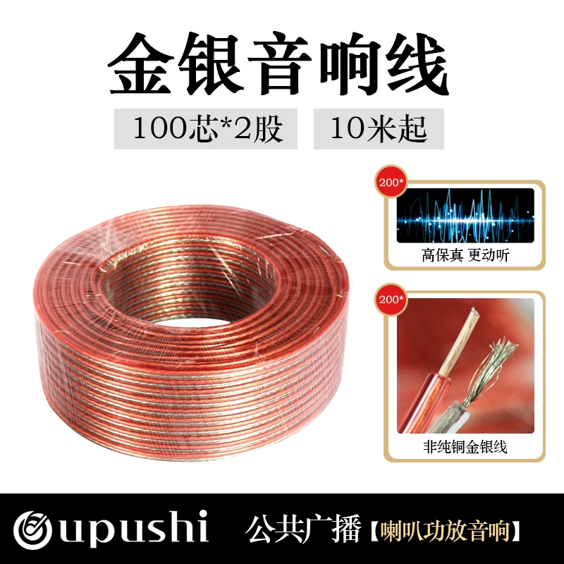 Youpusi 200# engineering audio cable high-fidelity speaker fever cable pure copper audio cable extension speaker gold and silver cable