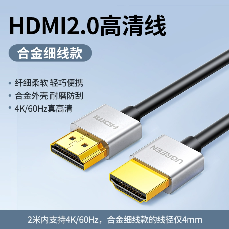 Green Alliance HDMI thin soft cable 2.0 computer connection monitor 4K ultra-high definition data short portable 0.5/1 meter hdml