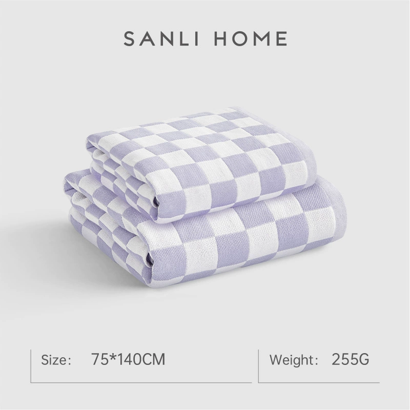 Sanli checkerboard cotton quick-drying gauze bath towel for women