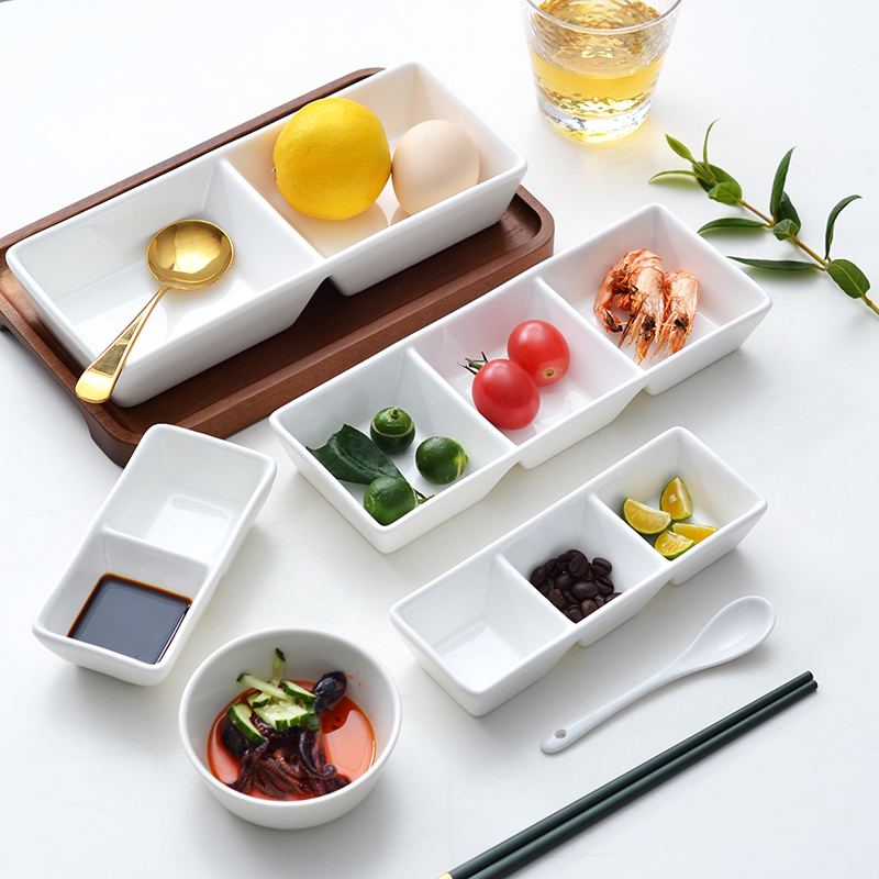 72N three-compartment dish seasoning plate small dish flavor dish dipping dish compartment vinegar dish dish hot pot barbecue shop plate