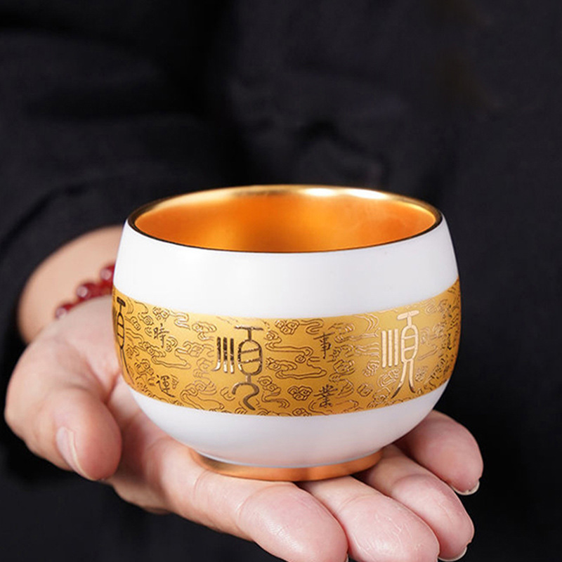24K Gold-plated Ceramic Tea Suet Jade White Porcelain Ceramic Household Light Luxury Kung Fu Tea Set Master Cup Single Cup Gift Box