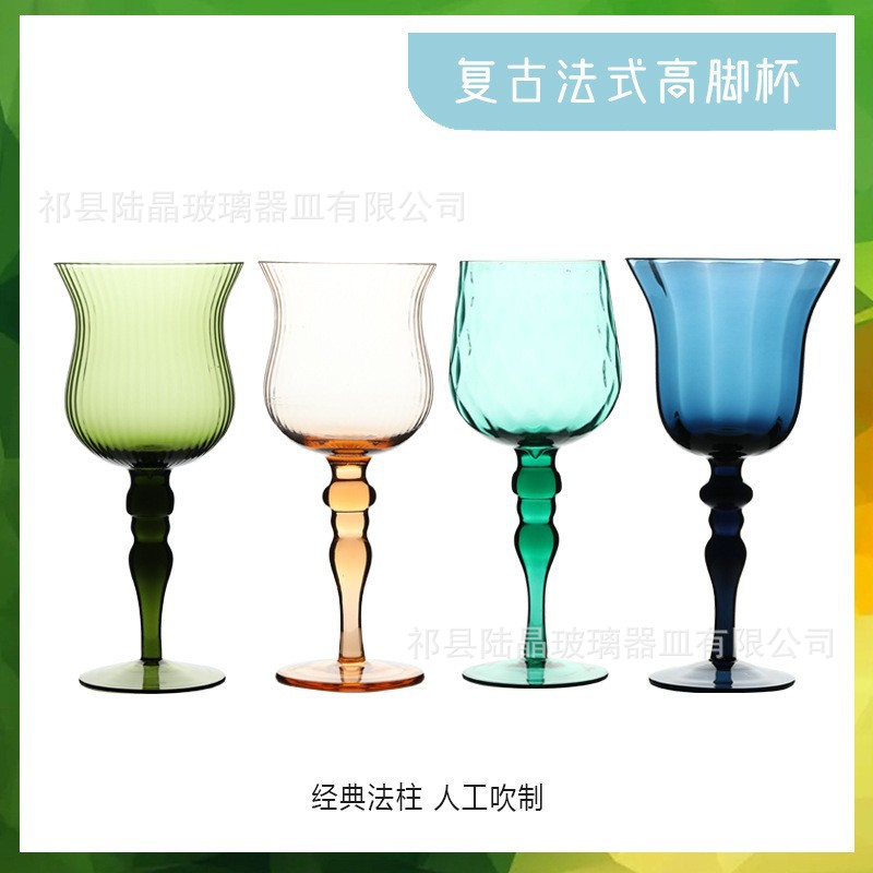 Vintage medieval goblet series retro primary color vertical grain Green red wine glass blue wine glass