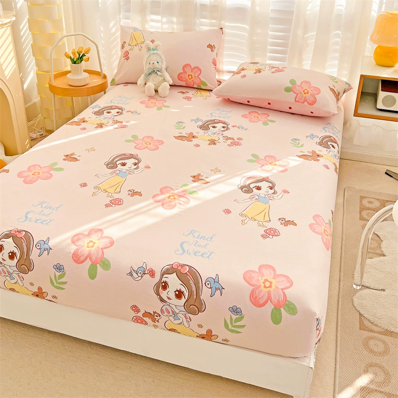 ins small fresh fitted sheet single piece pure cotton thickened bed cover anti-slip dust cover cotton floral mattress protector