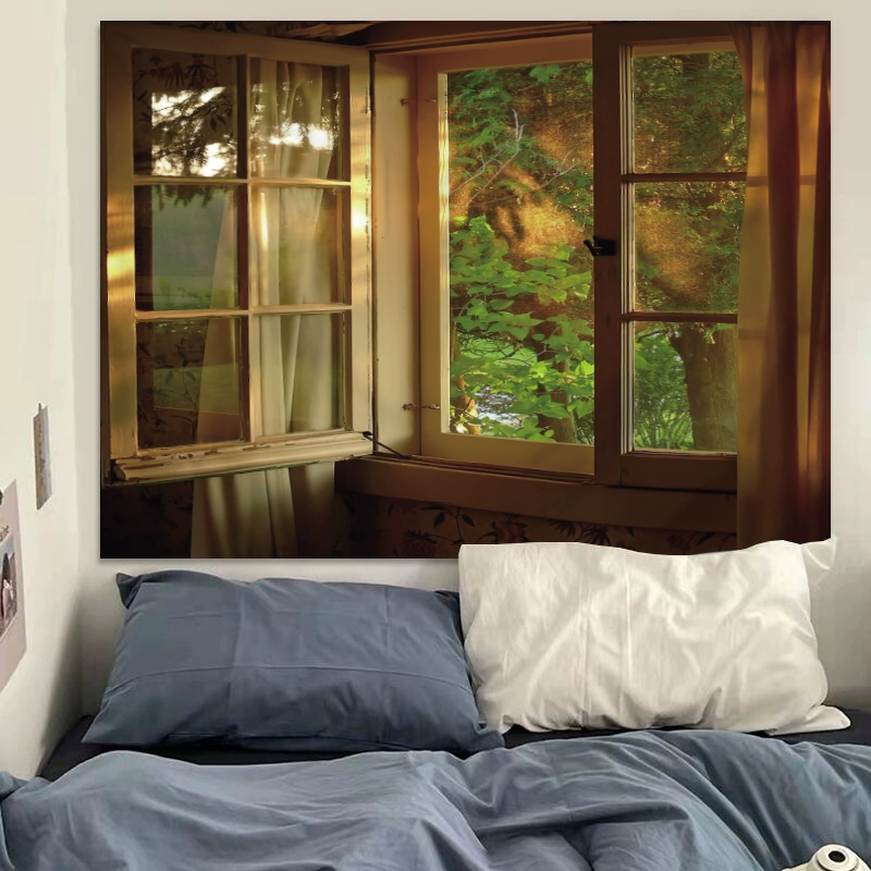 Still life outside the window, fake window scenery background cloth, bedside decoration hanging cloth, room renovation good things, tapestry, bedroom wall cloth