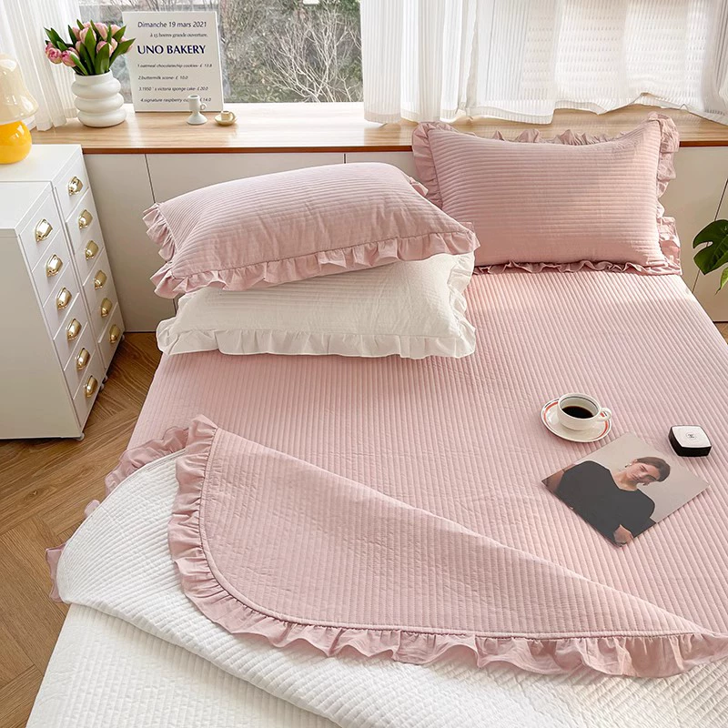 Cotton white Korean style lace quilted quilt double-sided bed cover
