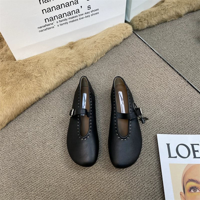 nana silver round toe studded comfortable ballet shoes