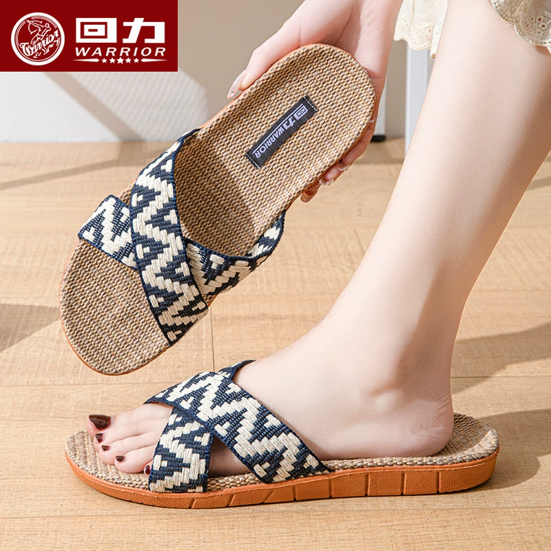 Pull back men’s breathable home indoor linen slippers