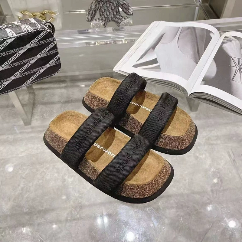 Genuine leather cashmere slippers for women’s outer wear 2024 summer cork heightening thick sole embroidered casual one-word strap sandals for women