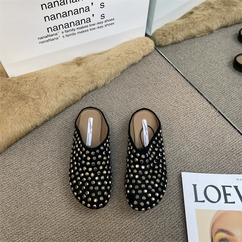 Lazy INS full diamond rivets flat heelless slippers