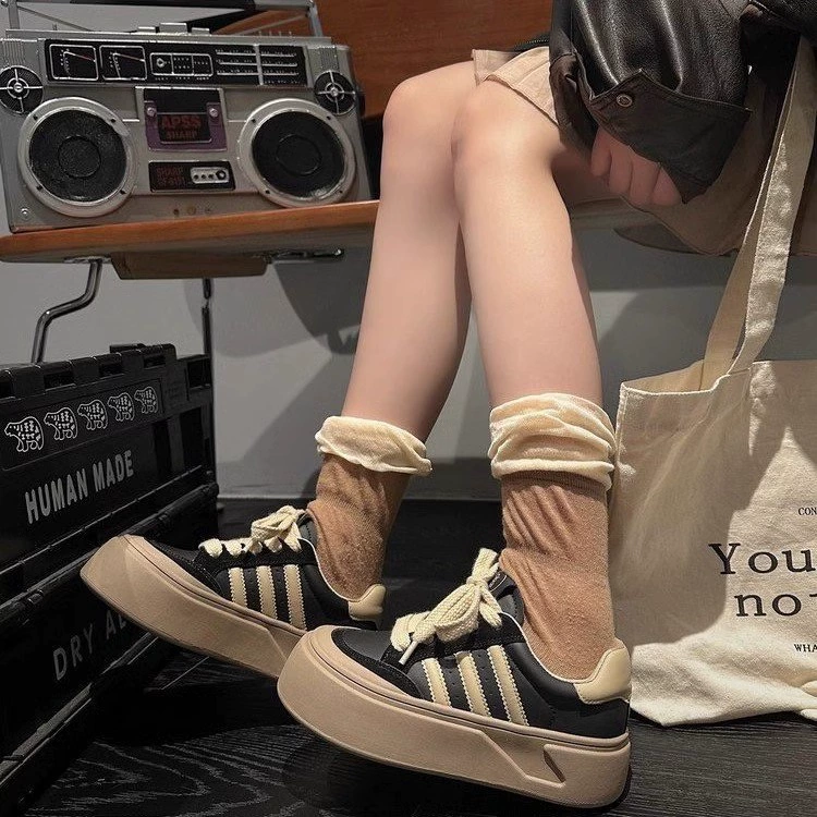 Popular retro fashion sneakers for women 2024 spring and autumn new thick-soled heightening shoes genuine leather niche casual moral training shoes