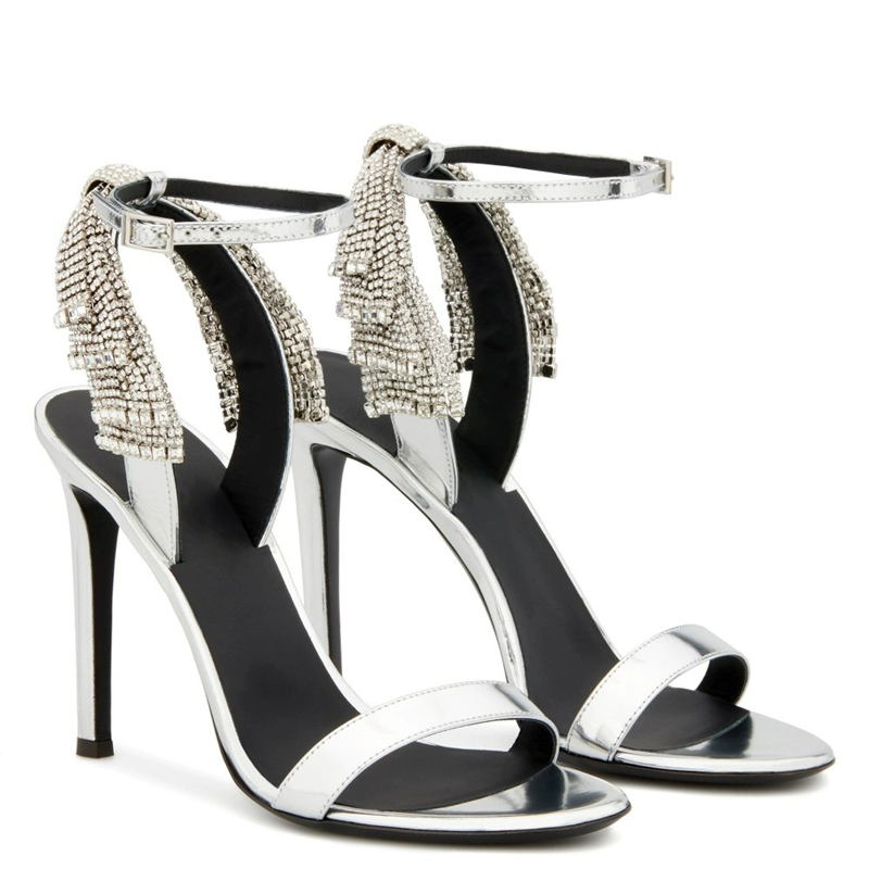 Women’s fashionable dual-purpose high-heeled sandals gold and silver rhinestones