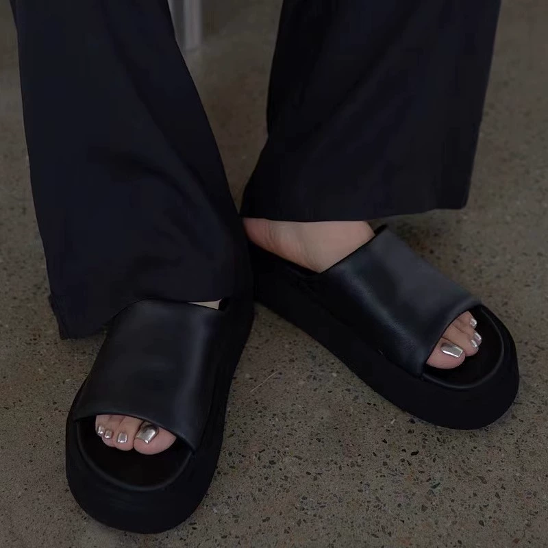 Thick-soled xiaobc genuine leather flip flops soft surface women’s shoes