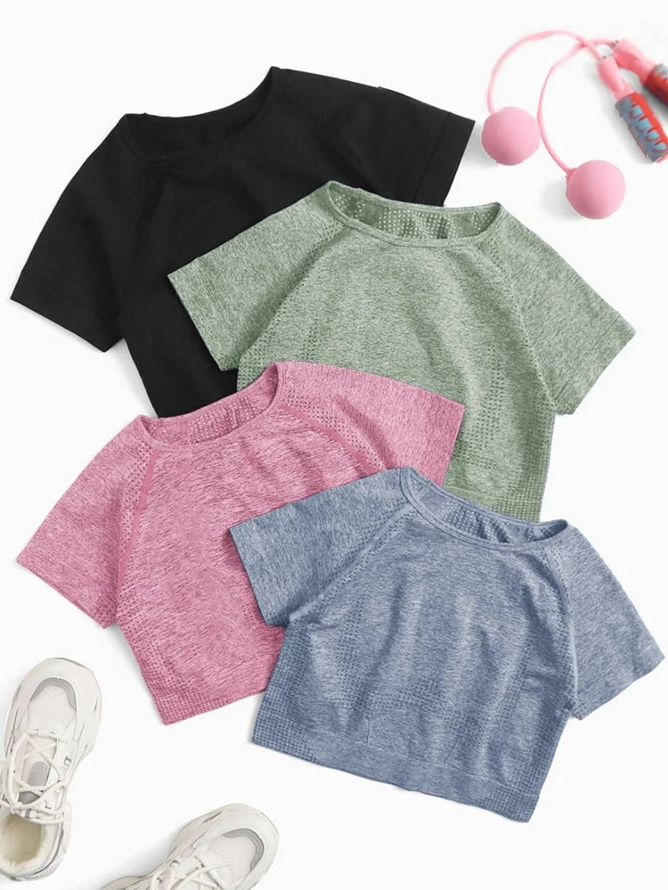 Stretchy Seamless Crop Top with Raglan Sleeves (Set of 4)
