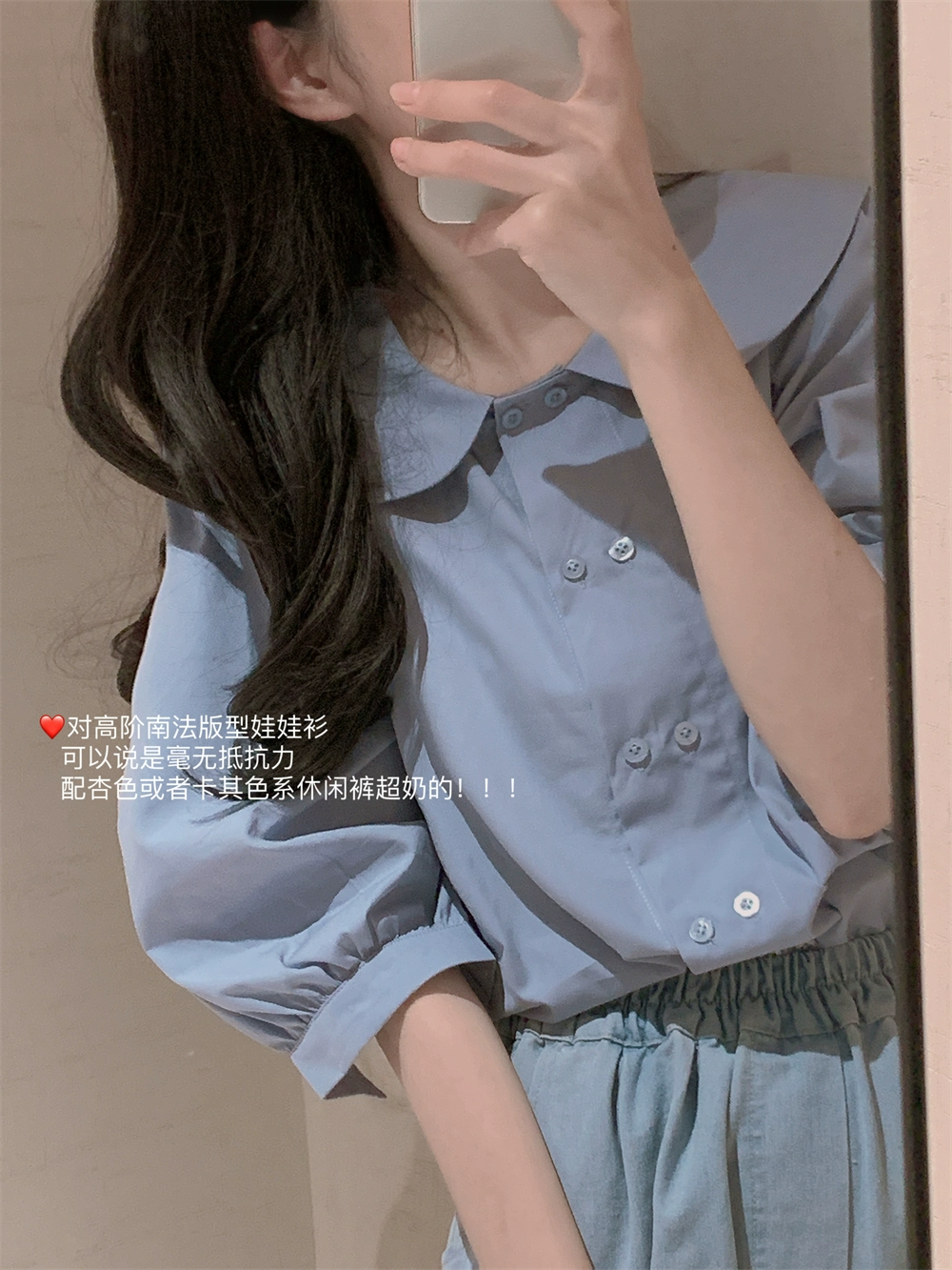 | nameOriginal | ◆Eau de toilette heavy French lotus leaf retro solid color double-breasted temperament versatile short-sleeved shirt |