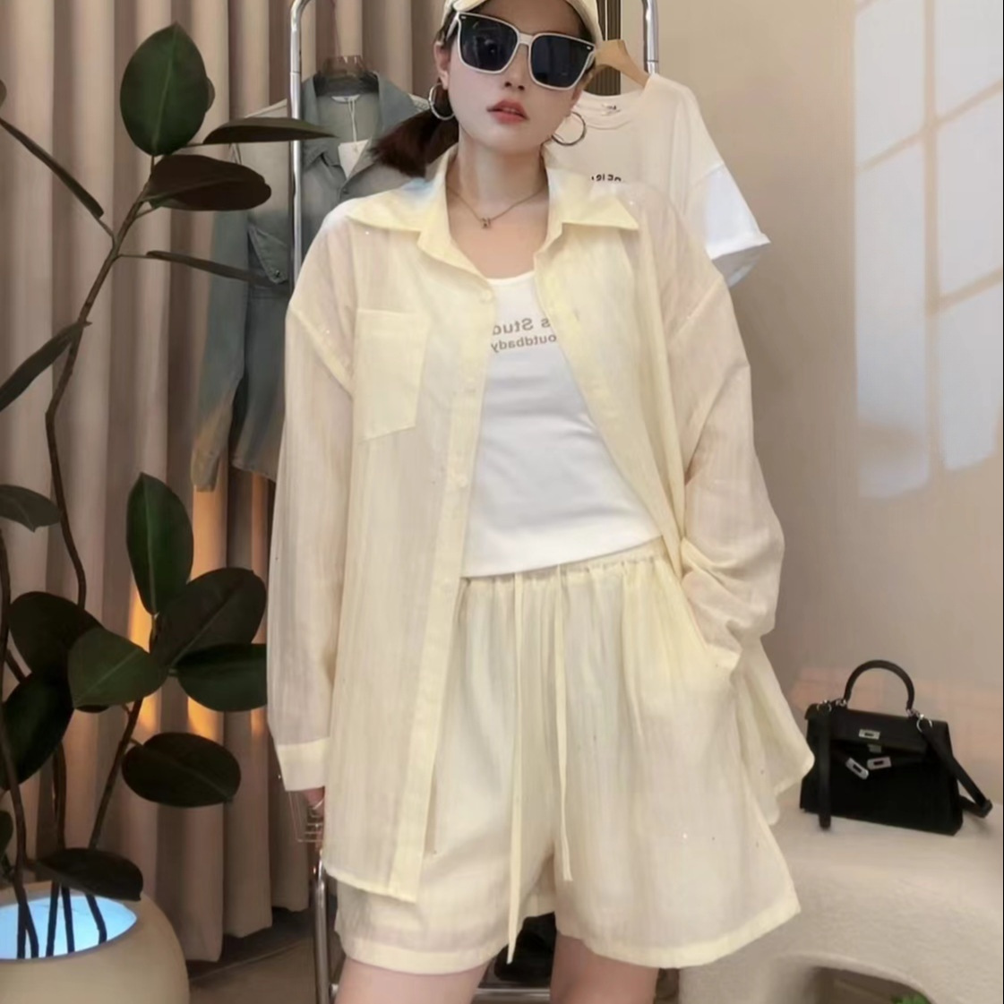 | nameOriginal | ❤2024 Summer Slimming Elegant Thin Breathable Niche Casual Long-sleeved New Stylist Flash Film Women's Three-piece Set |