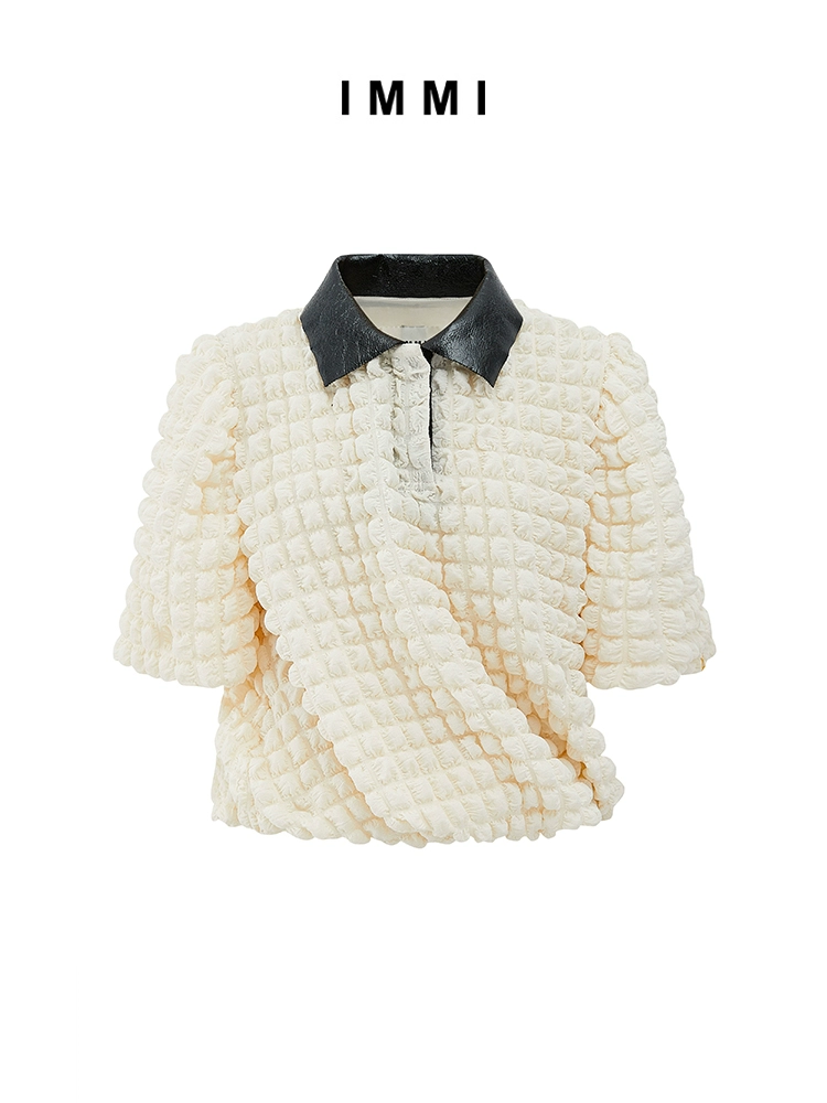 【IMMI】Autumn and Winter Puff Puff Checkered POLO Top 112TP014X