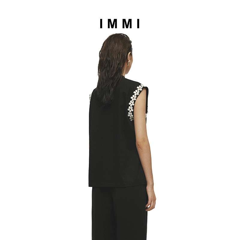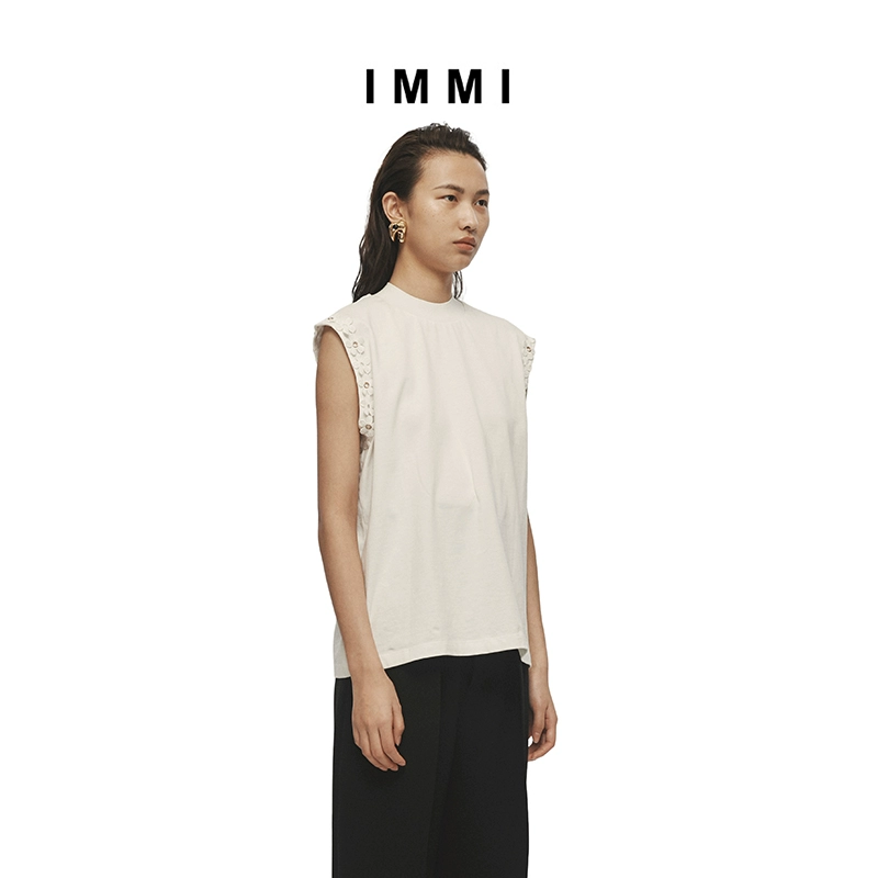 [IMMI] Spring and summer flat -grained sleeveless T -shirt 111te016y