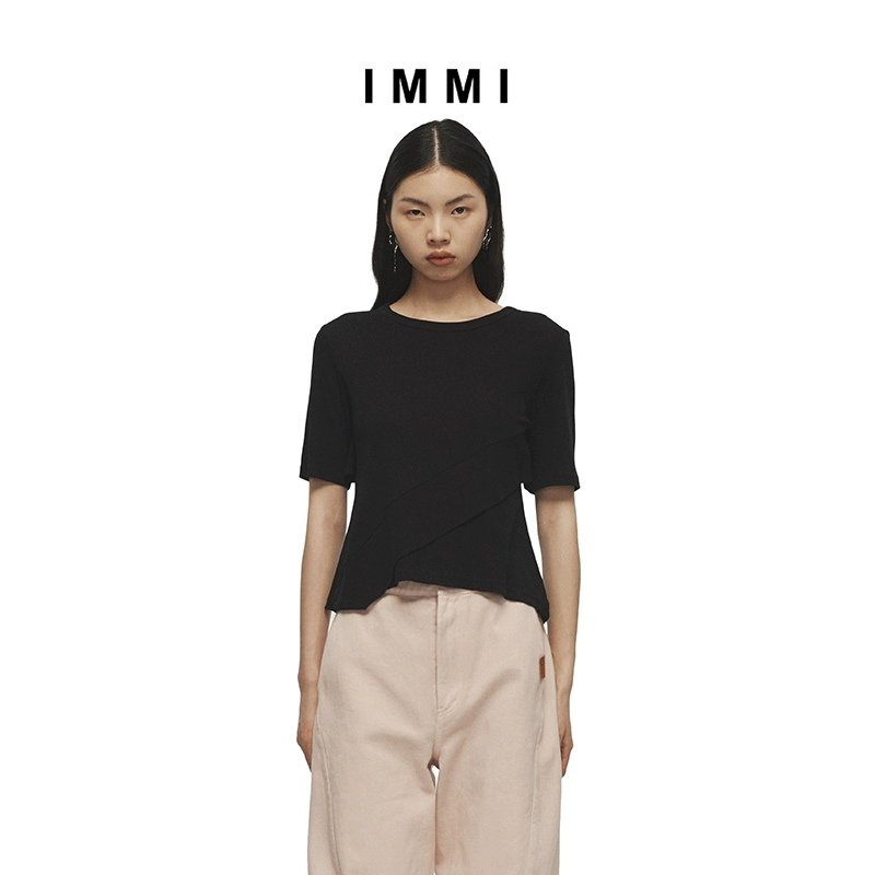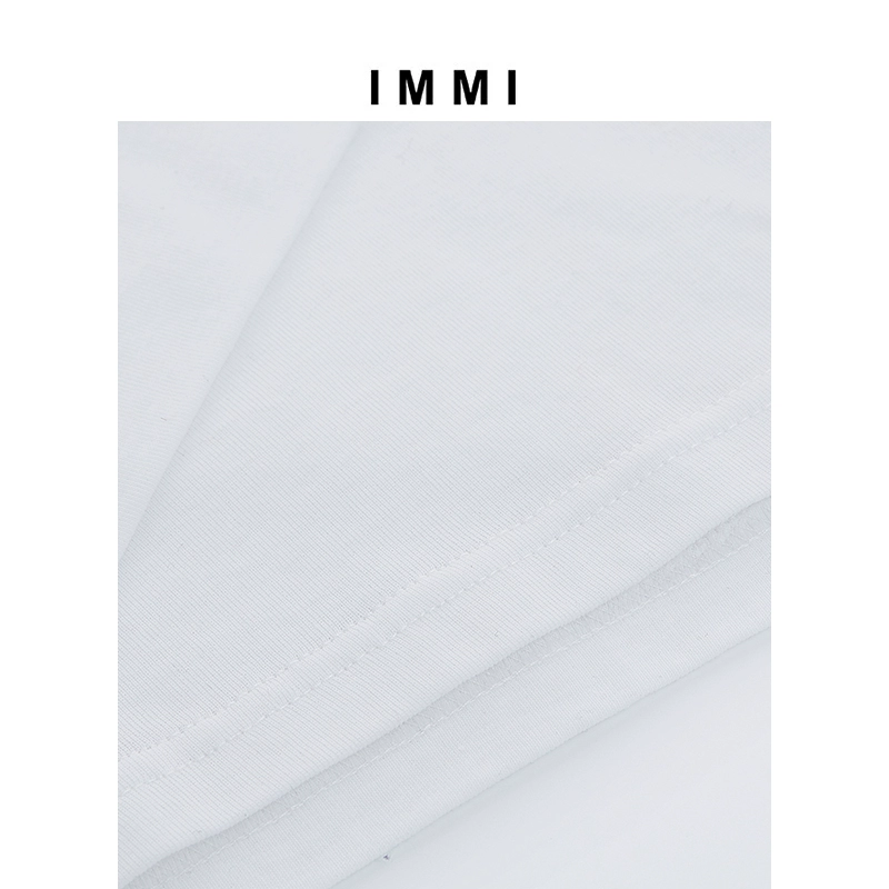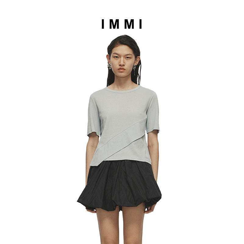 【IMMI】Spring and summer thin ribbed cuffed short-sleeved T-shirt 111TE023Y