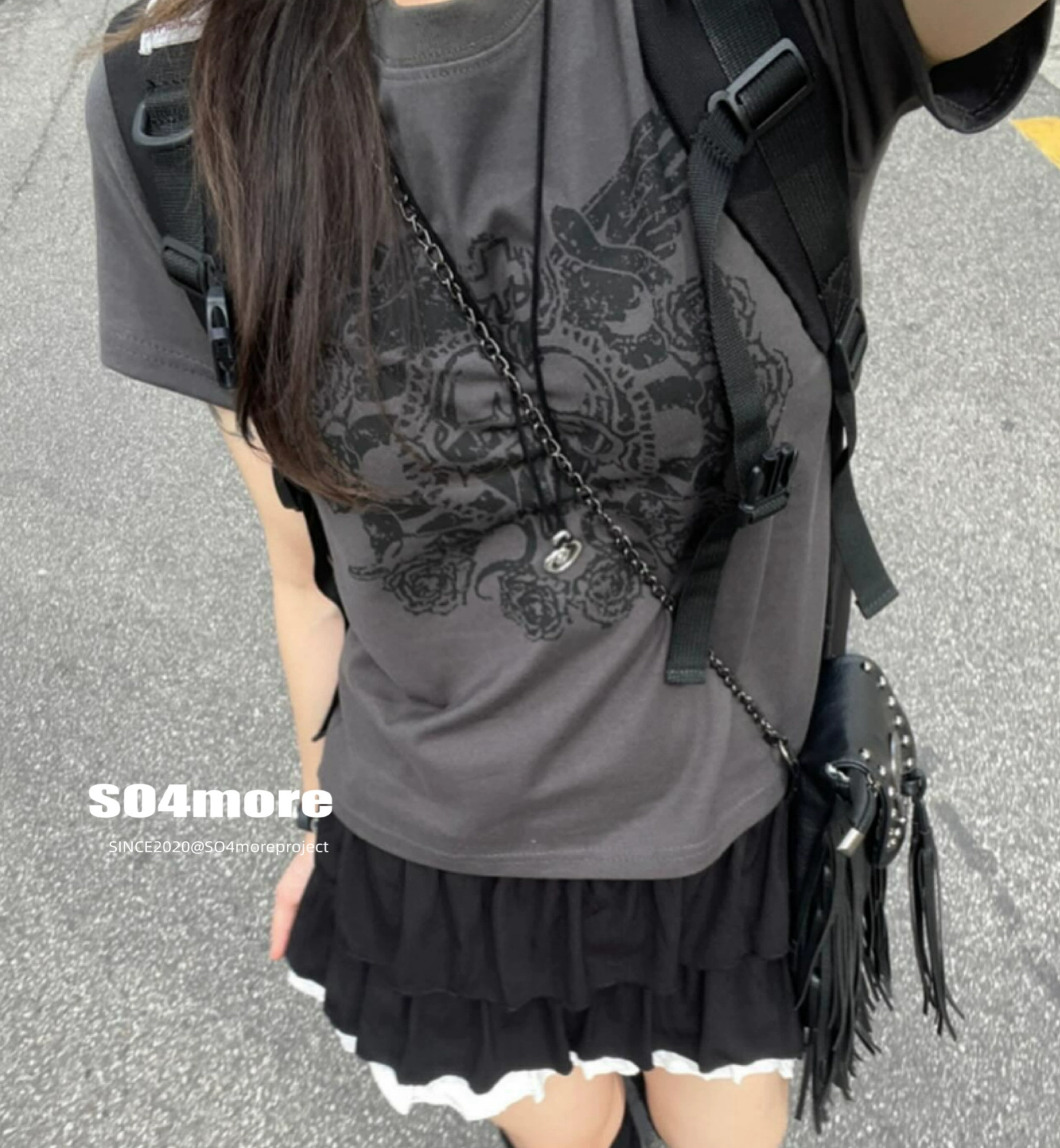| nameOriginal | 【SO4more】Korea Direct Mail y2k Love Wings Dark Tattoo Design Right Shoulder Short Sleeve T-Shirt |