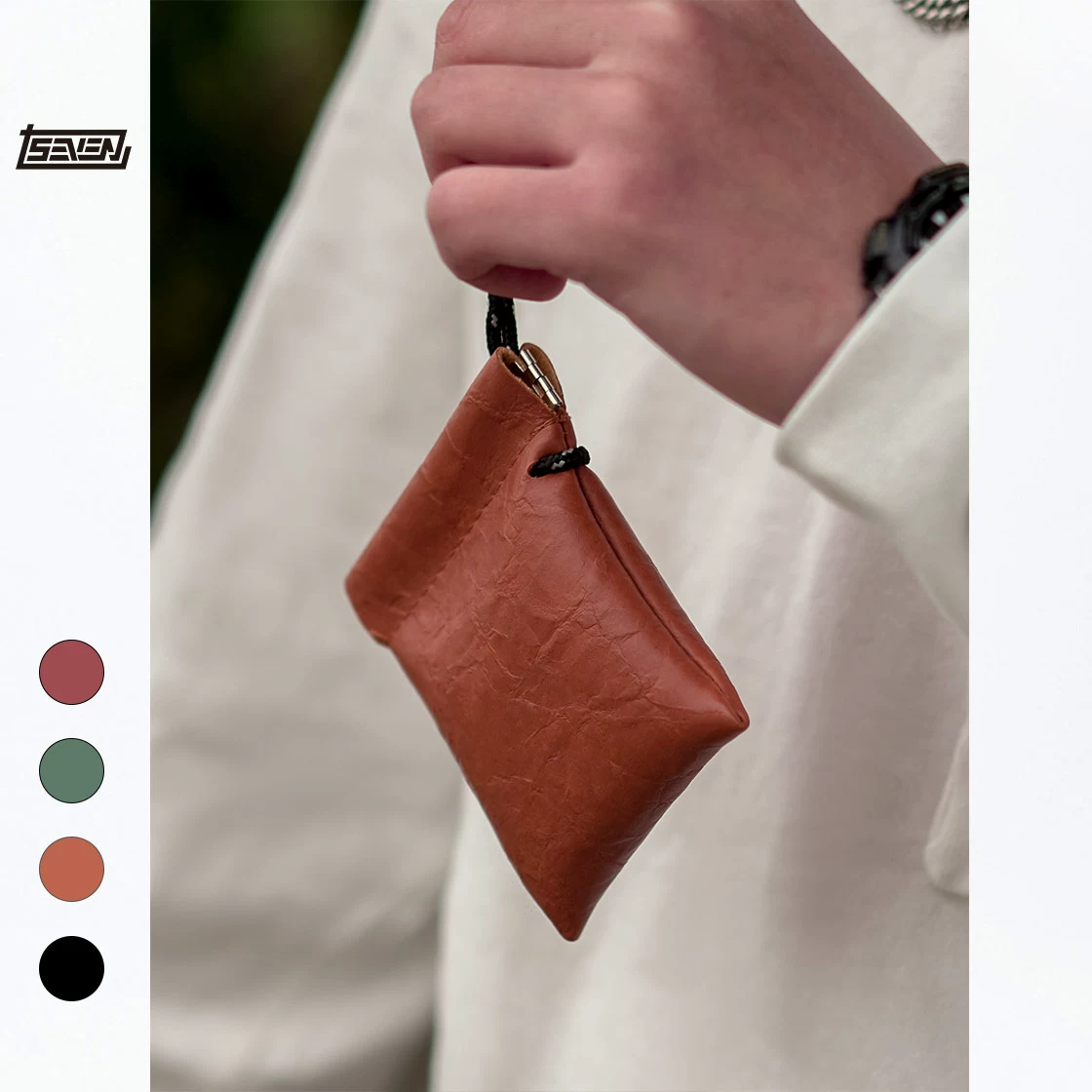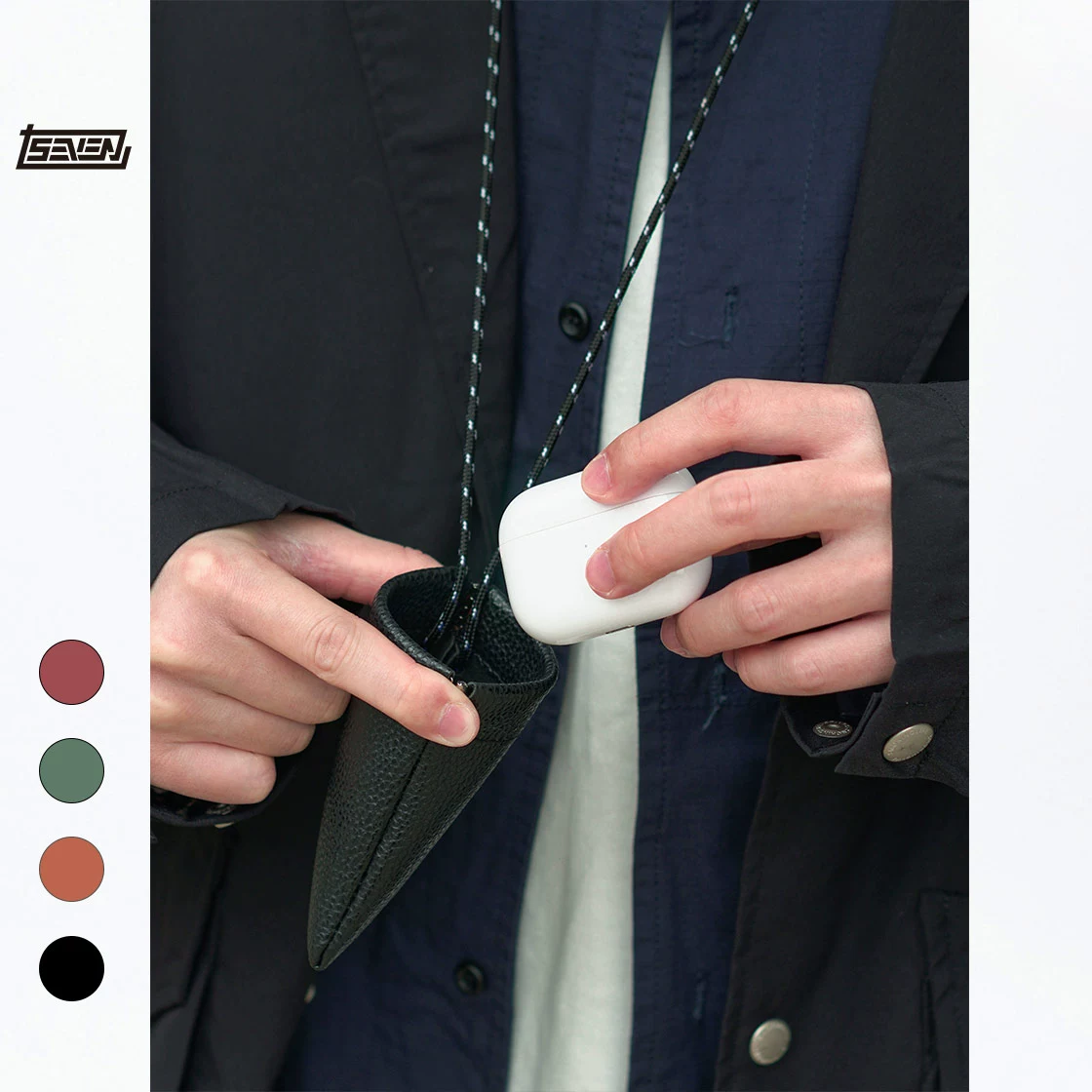 | nameOriginal | 乜曒 Japanese retro halter neck airpods litchi pattern headphone bag key bag wallet PU leather versatile card holder |