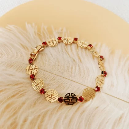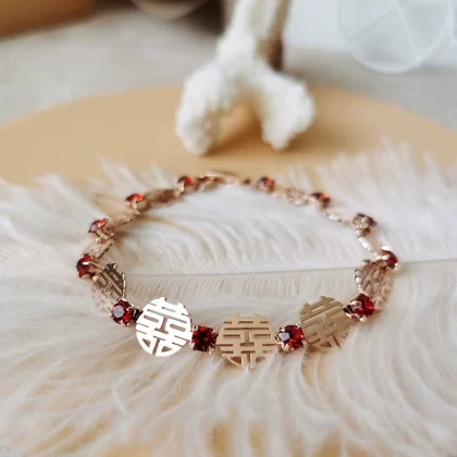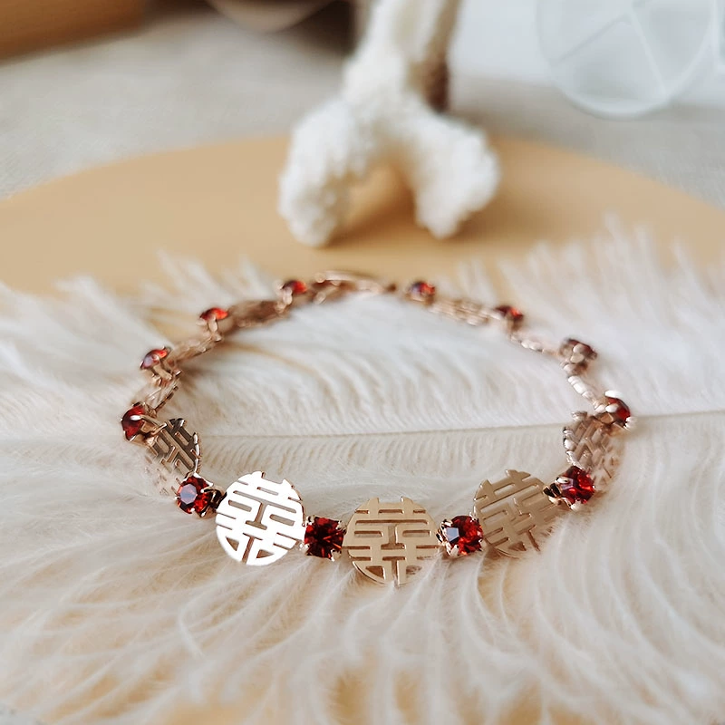 | nameOriginal | 囍 Bracelet for women, crystal inlaid rose gold bracelet, wedding registration photo accessory, Chinese style hand jewelry |