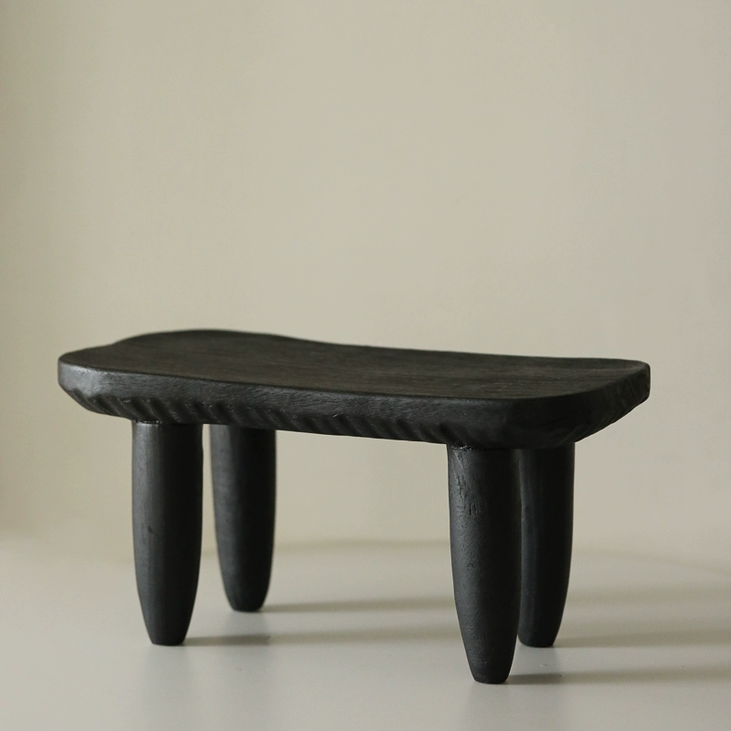 棣|DI_HOME retro small stool carpet bay window small side table wabi-sabi style black bench solid wood handmade