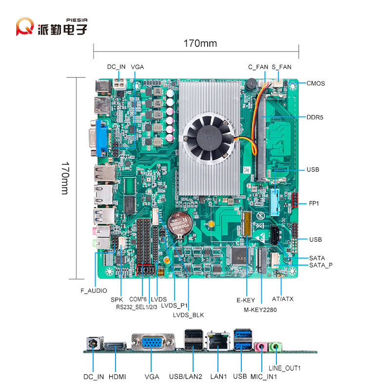 派勤工控主板N100/200/300双网3显6com口商显一体机自助终端机ITX