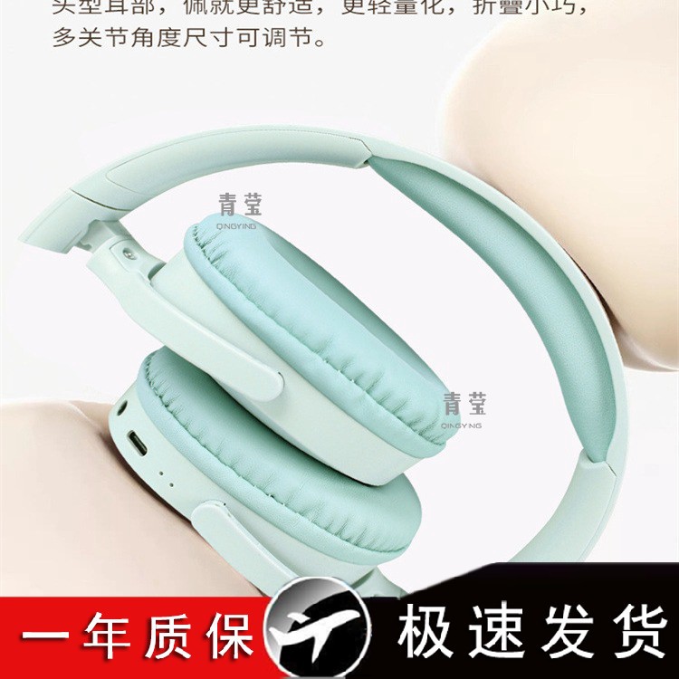 蓝牙耳机头戴式大耳罩网课学习儿童耳机运动型游戏超长续航大青莹