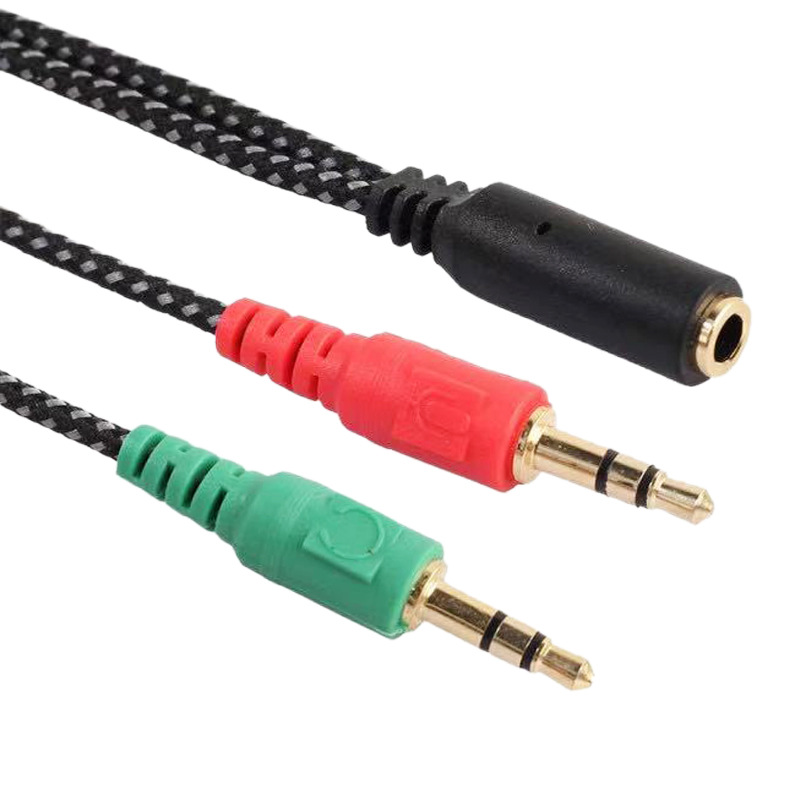 0.2 m 3.5mm one female two male audio cable 3.5 two-in-one computer to mobile phone headset adapter cable gold plated
