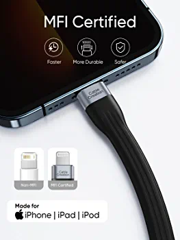 | descriptionOriginal | CableCreation USB Type C to Lightning Cable 0.5 FT Apple MFi Certified – CableCreation MFi Certified Lightning to USB-C cable ensures your Apple devices are charged safely and 100% compatible with the whole iOS system. You can log in to the official Phone MFi Licensed Accessories (MFi·Phone·com) and search our brand "CableCreation" to confirm. Support PD Fast Charging – Use the USB-C lightning cable with USB-C PD Charger (including Apple 18W, 30W, 45W, 61W or 87W USB-C Power Adapter) to charge your iOS device. Data Transfer – The USB-C to iPhone Charger Cable offers data sync up to 480Mbps. Transfer music, movie, files between iPhone and USB-C laptops in seconds. Premium Material – Aluminum Shell and TPE Jacket Cable Length – 0.5FT / 6 Inch CableCreation Lightning Cable to USB C 18W PD Fast Charging Original C94 Connector 10000+ Bend Lifespan iPhone 13 Charger Cable Apple Certified MFi 1. Please use USB-C PD adapter (including Apple 18W 29W, 30W, 61W, or 87W) to access fast charging. 2. iPhone 8 or later models support fast charging, previous models only support normal charging. 3. It can charge your iPhone from 1% up to 50% in around 30 minutes with 18W PD adapter. But if the battery reaches 75%, the phone will enter charging protection mode, which means it will charge slower after 75%. Short iPhone Charger Cord 6 Inch USB3.1 A to C short cable USB3.1 C to C short cable USB3.1 A to C 5FT USB2.0 C to C 10FT USB2.0 A to C |