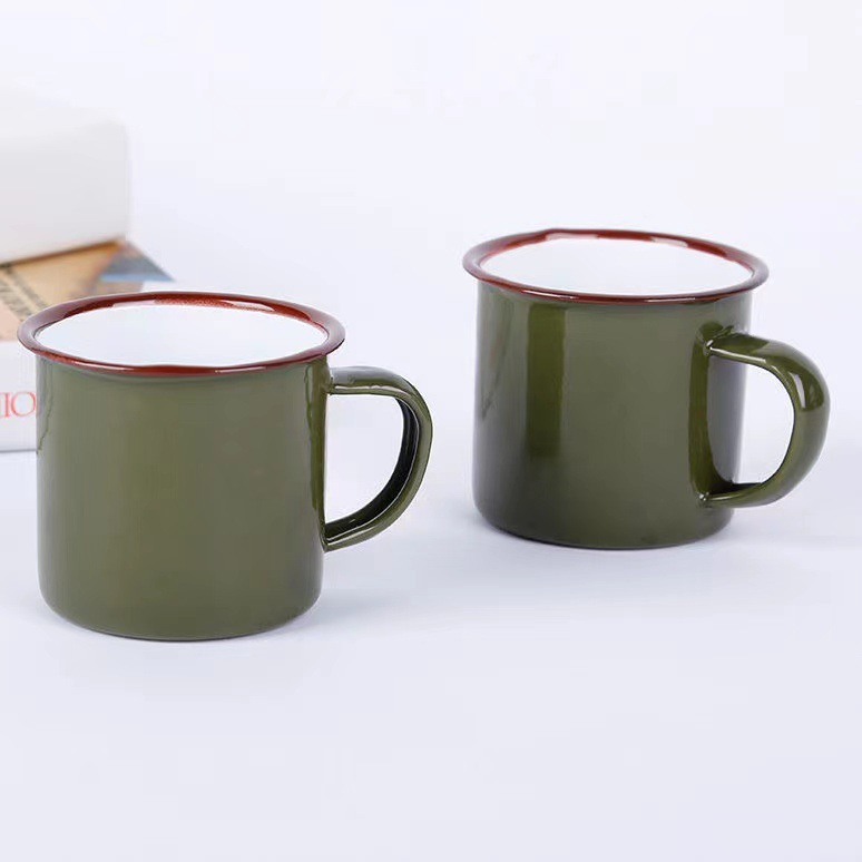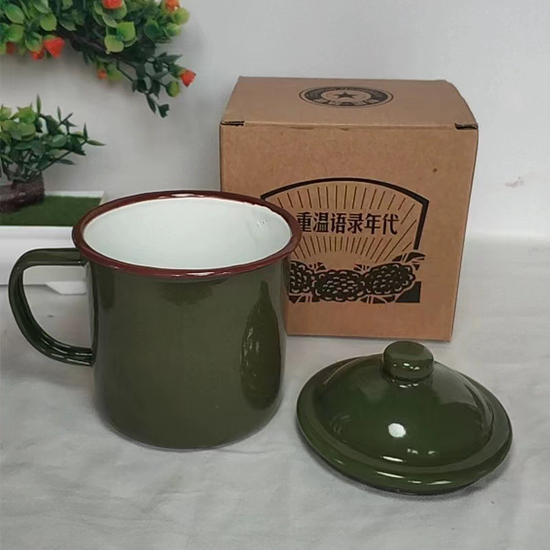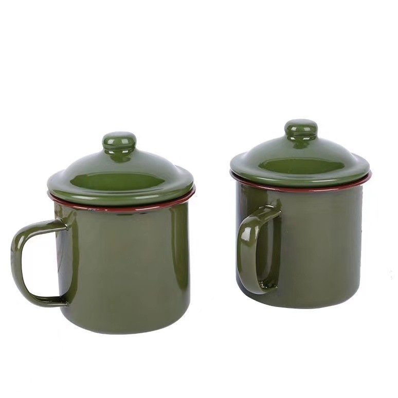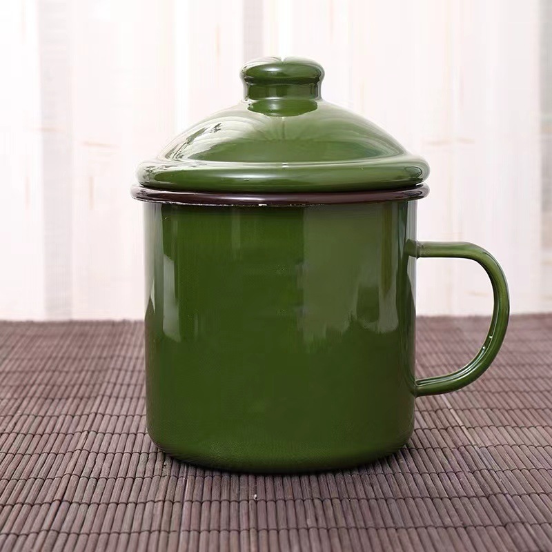 0.5mm Thickened Army Green Enamel Cup Tea Jar Retro Nostalgic Old-fashioned Iron Tea Jar with Lid Support Printing
