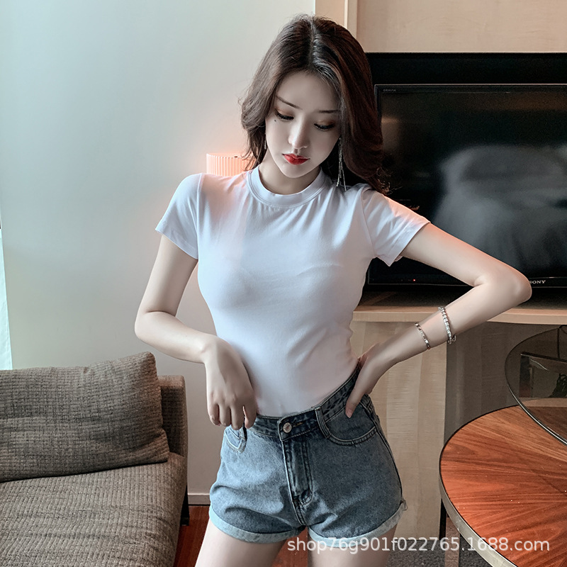 | nameOriginal | 011 Small High Neck Slim Fit Short Sleeve Shoulder T-Shirt 2022 Summer New Casual Joker Top Trendy ins |