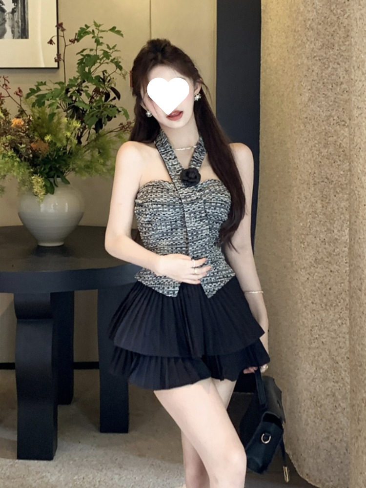 | nameOriginal | 024 Summer Slim Strapless Vest Exterior Wear Camellia Neck Top Hot Girls High Waist Skirt Pants Suit Women's Clothing |
