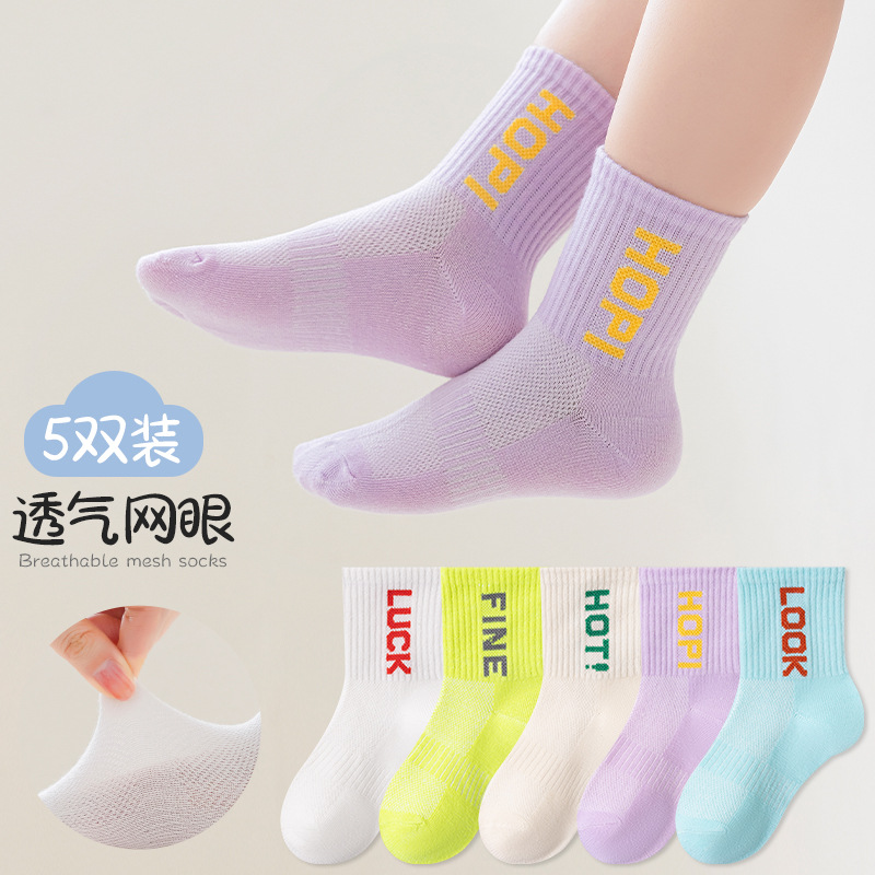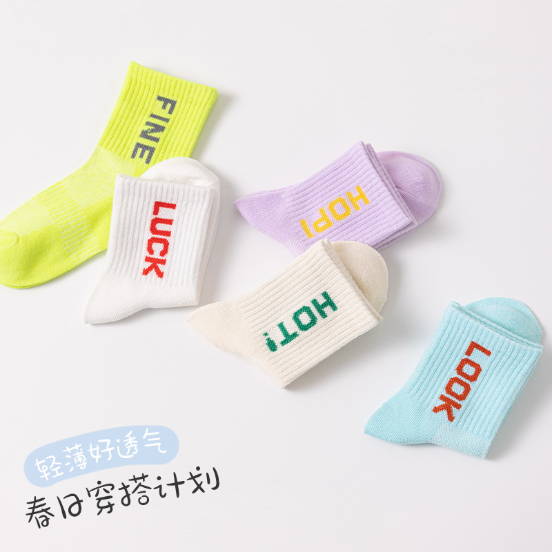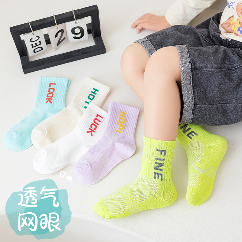 | nameOriginal | 04 Beno children's socks spring and summer mesh thin fashion sports socks girls letter striped mid-calf socks wholesale |