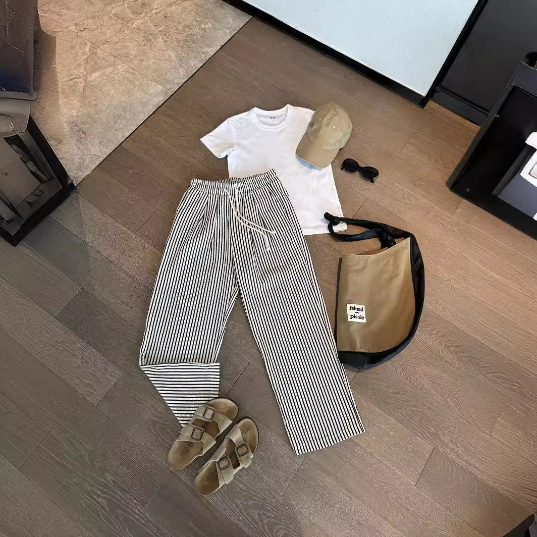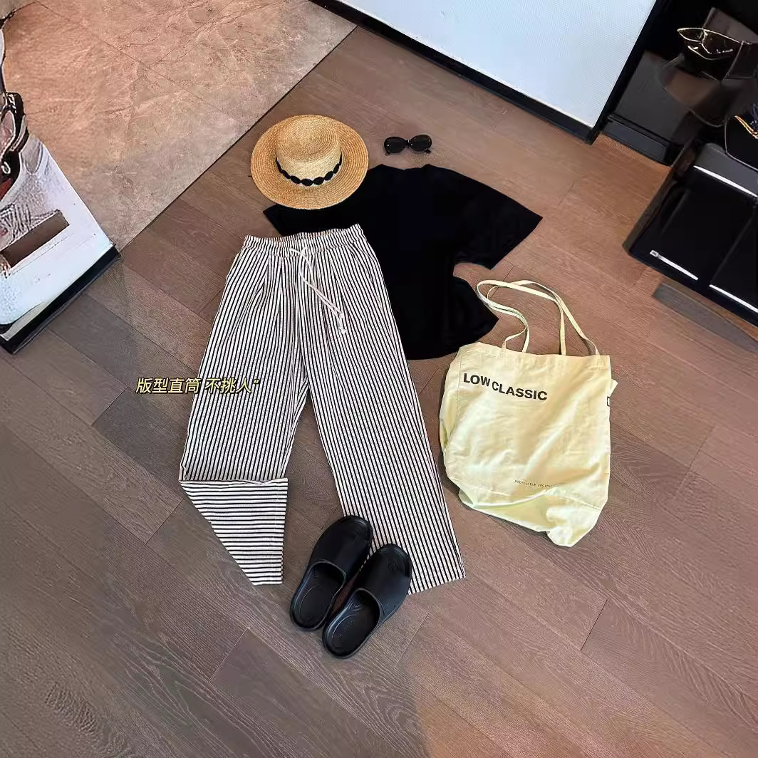 | nameOriginal | 042202 Spring New Women's Casual Loose Slimming Vertical Stripe Straight Pants Lazy Style Comfortable Casual Pants |