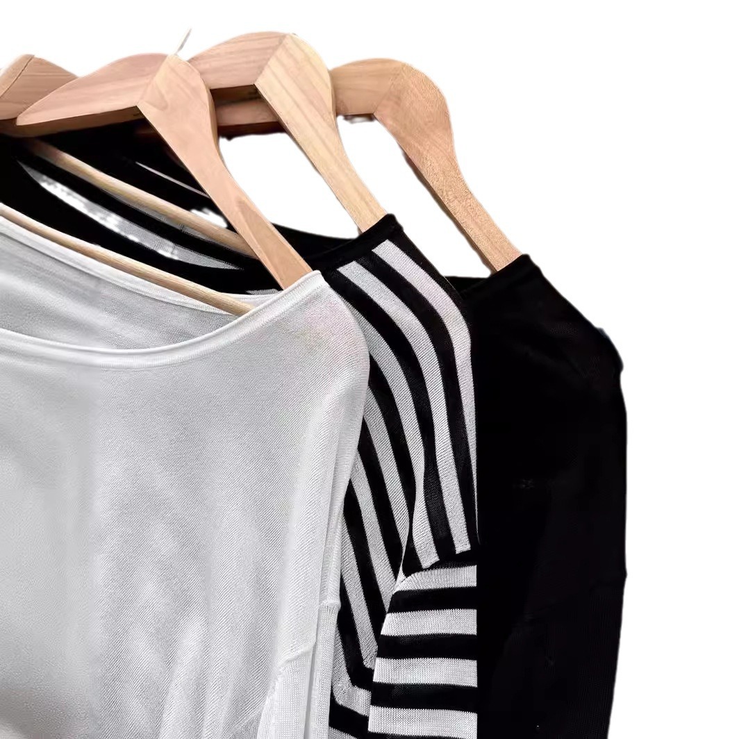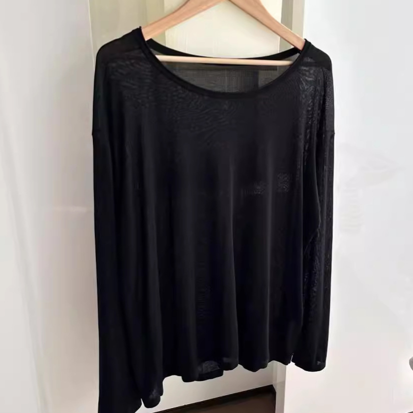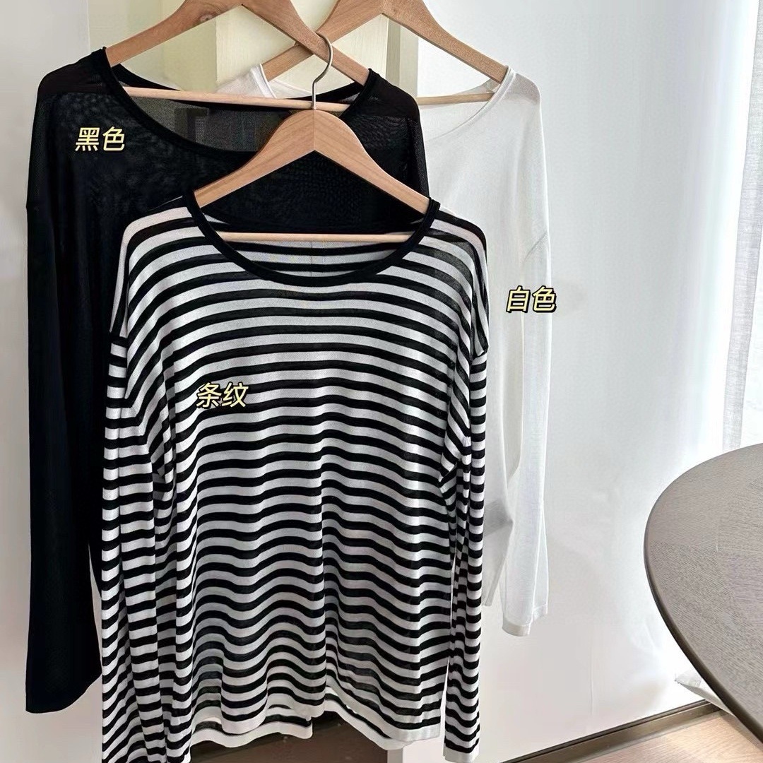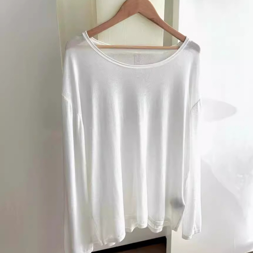 042506 Spring and Summer New Women’s Daily All-match Slimming Simple Casual Round Neck Pullover Three-color Sunscreen Top