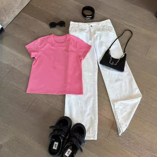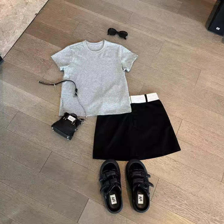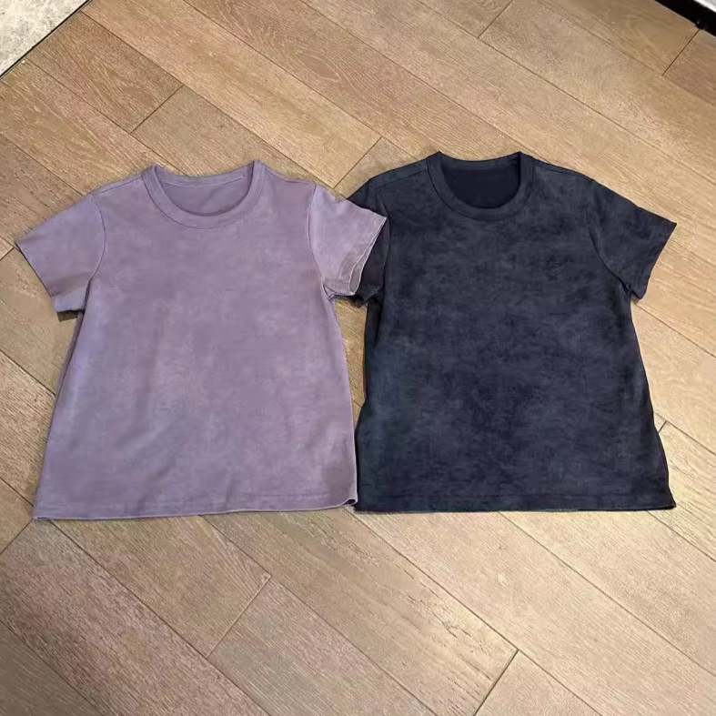 052802 Summer New Women's American-style Retro Commuter All-match Tie-dyed Fine Flash Age-reducing Round Neck Short-sleeved Top