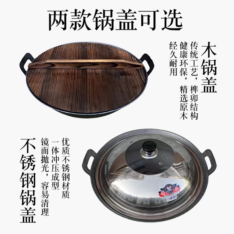 | nameOriginal | 06YM double-ear pig iron pot old-fashioned rural round bottom large iron pot household thickened polished cast iron wok without coating |